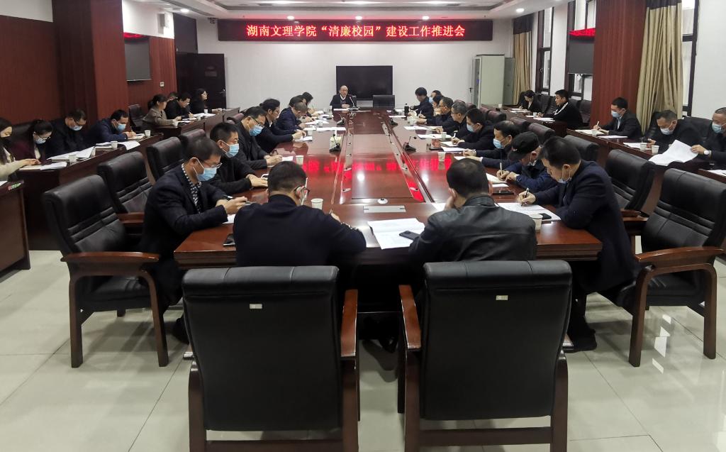 郭文超在会上讲话。他就有效推进清廉校园建设强调了四点意见:一是要提高认识。清廉校园建设是落实省委建设清廉湖南决策部署的一项重要政治任务,是学校“十四五”期间的一项重要工作,全校上下务必站在落实立德树人根本任务的高度加以认识。二是要加强学习。要认真组织学习《中共湖南省委关于推进清廉湖南建设的意见》《湖南文理学院清廉校园建设实施方案》,认真领会精神,吃透工作要领。三是要力求实效。要坚持问题导向,抓好顶层设计,制定工作方案,建立问题清单、任务清单、责任清单、制度清单;要压实各方责任,协同配合、同向发力;要创新方式方法,把清廉校园建设与业务工作有机融合,坚决防止“两张皮”;要建立考评机制,倒逼工作出实效。四是要加强宣传。及时总结推介“清廉单元”建设特色和成效,营造崇清尚廉的校园氛围。(一审 易姣 二审 杨静 三审 袁勇军)