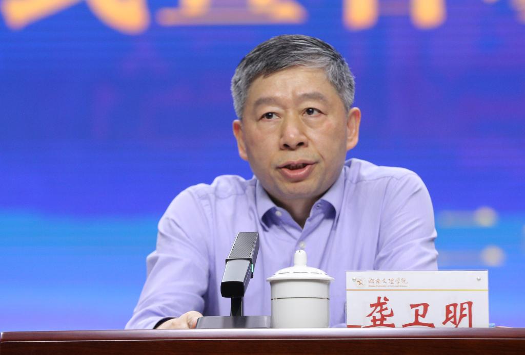 龚卫明在会上讲话。他指出,习近平总书记多次提出“四有好老师”、“四个引路人”与“四个相统一”的要求,对高校教育工作者的思想政治素质和职业道德水平提出了具体的要求,对新时代师德师风的内涵进行了全面的阐释。学校成立师德师风宣讲团,是贯彻落实习近平总书记关于教育的重要论述和来湘考察重要指示批示精神,积极响应习近平总书记加强师德师风建设号召的重要举措。学校通过树典型、鼓干劲、扬正气,发挥先进典型在思想政治教育和师德师风建设,特别是优良学风、教风、校风建设中的示范引领和模范带动作用,一定能推进立德树人根本任务的有效落实,推动“三全育人”体系在学校落地生根。最后,他希望全校教职员工要争当优秀教育工作者,要自觉练就博大的胸襟,坚定理想信念,培养道德情操,夯筑扎实学识,奉献仁爱之心,不负时代,不负韶华,倾心尽力,孜孜以求,为实现民族复兴、国家富强目标,履行文理使命,彰显文理担当。