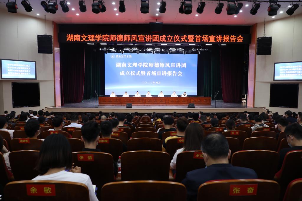 学校机关教辅单位全体教职工、教学院主要负责人、近三年新进教师和宣讲团成员近500人参加成立仪式。(一审 易姣 二审 杨静 三审 刘安吾)