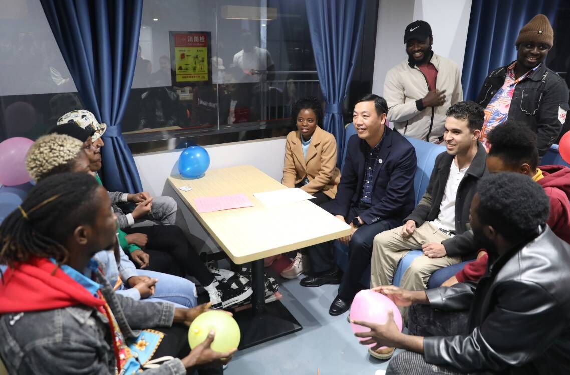 党委副书记、校长刘宇文与留学生们在一起亲切交谈