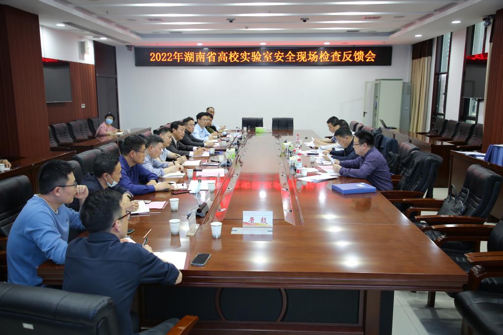本网讯(通讯员 宋奇光)5月10日下午,由中南大学湘雅公共卫生学院副院长任国峰任组长的省教育厅检查组一行4人来我校开展实验室安全专项检查,检查分为听取学校汇报、实验室实地检查及意见反馈三个环节进行。党委副书记、校长刘宇文主持汇报会,副校长肖小勇就实验室安全工作进行汇报,学校各学院主管实验室工作的副院长及保卫处、教务处相关负责人,实验室安全管理人员参加汇报会。