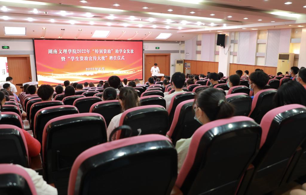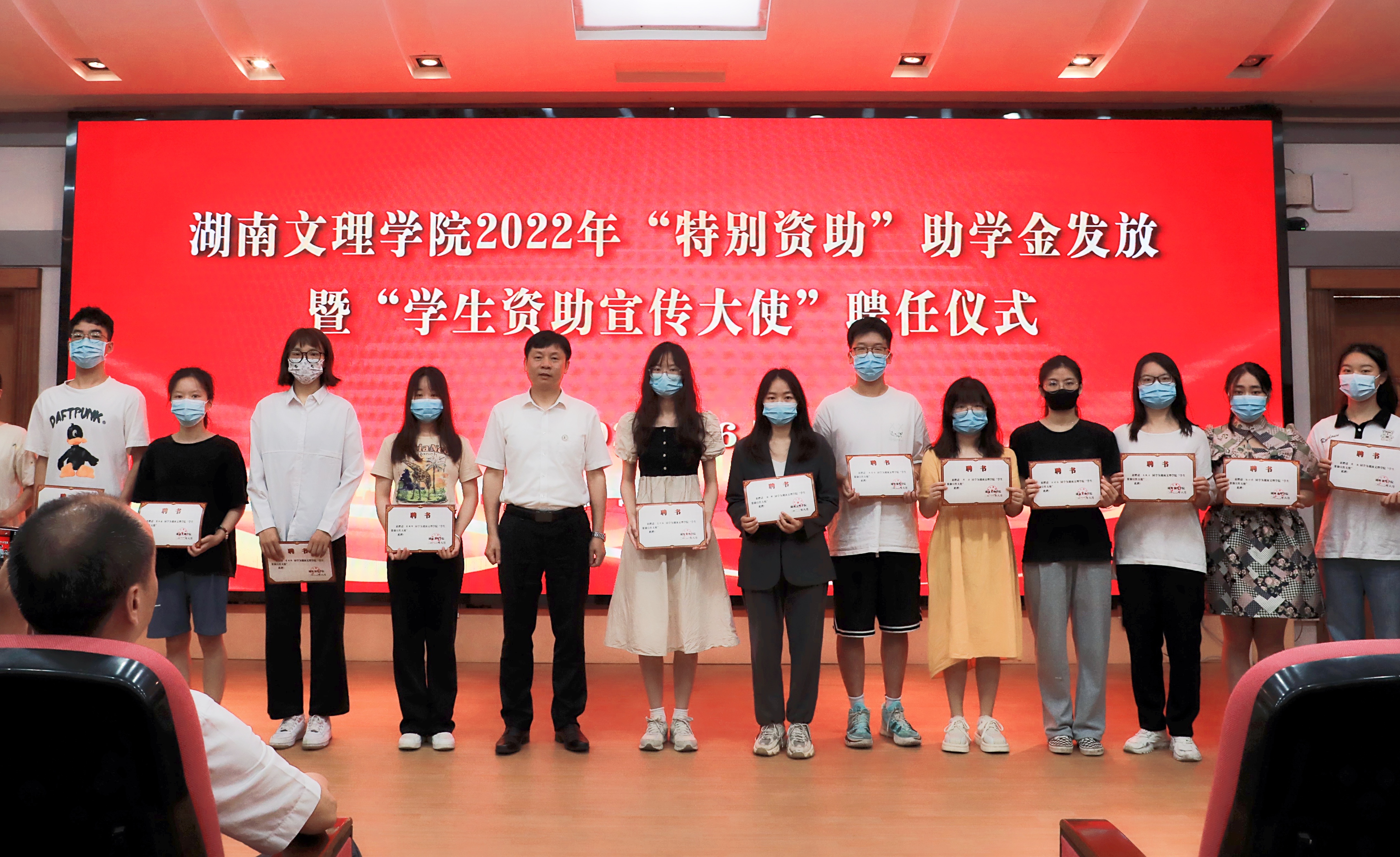 6月24日,湖南文理学院2022年“特别资助”助学金发放暨“学生资助宣传大使”聘任仪式在图书馆举行。学校领导现场宣布在每年日常资助学子2000余万元的基础上,再发放50万元“特别资助”助学金帮助76名家庭经济困难学生完成大学学业。
