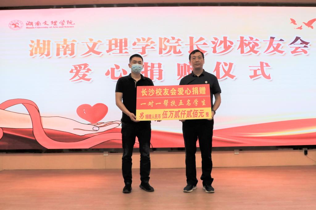 党委副书记、校长刘宇文代表学校接收长沙校友捐赠的助学金