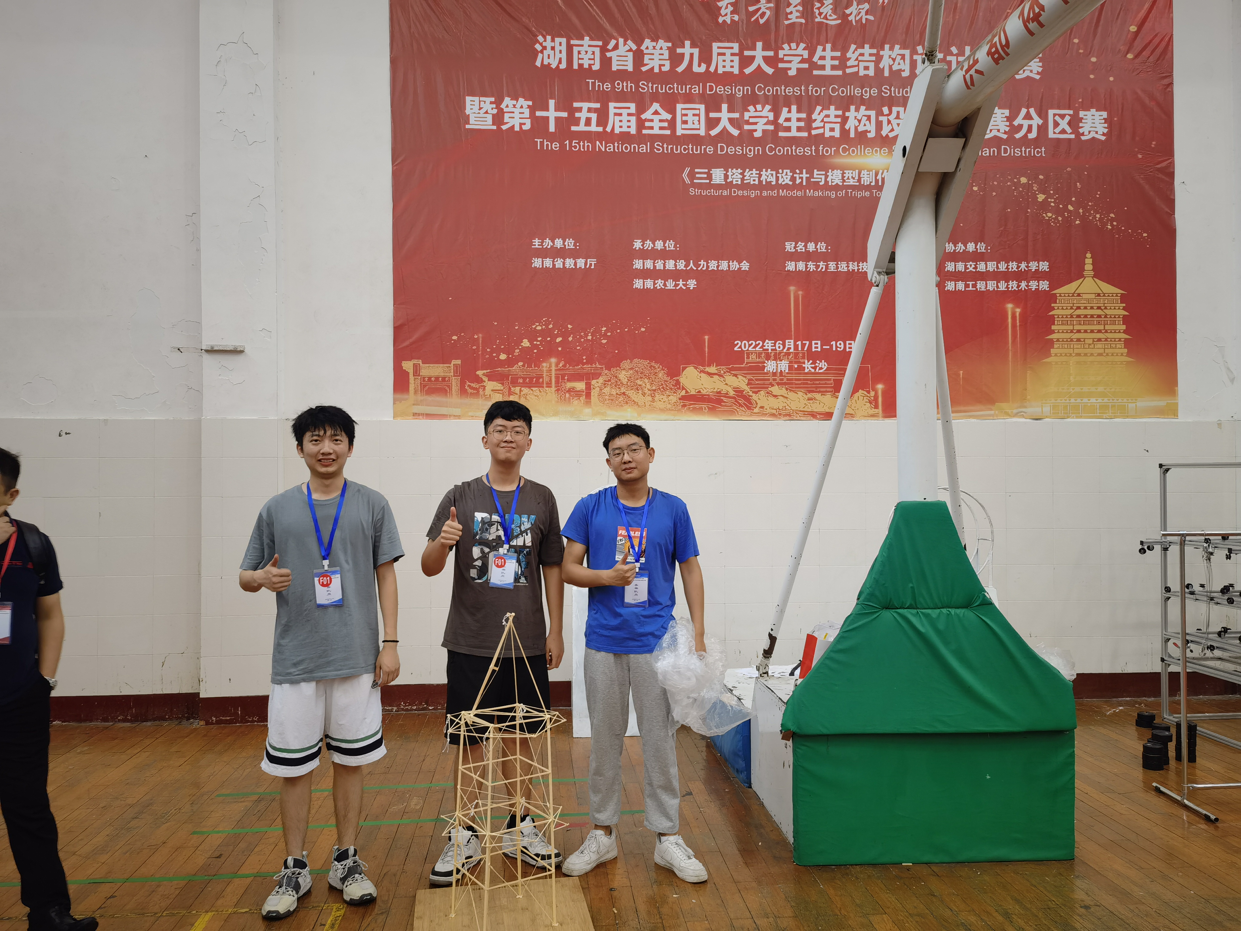 本网讯(通讯员 罗泽元)6月17日至19日,2022年湖南省第九届大学生结构设计竞赛暨第十五届全国大学生结构设计竞赛分区赛在湖南农业大学体育馆举行,大赛由湖南省教育厅主办,湖南农业大学承办,共吸引来自全省33所高校(含独立学院、高职院校)共计95支队伍参赛。