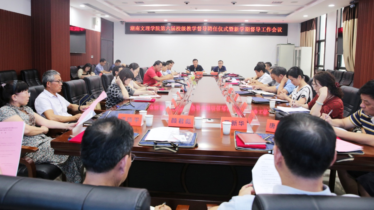 本网讯(教学督评与教师发展中心 供稿)9月19日上午,我校第六届校级教学督导聘任仪式暨新学期教学督导工作会议在逸夫楼A305会议室举行。党委副书记、校长刘宇文,党委委员、副校长刘春晖出席会议,第六届校级教学督导专家委员会全体成员,教学督评与教师发展中心负责人及工作人员参加会议。会议由刘春晖主持。