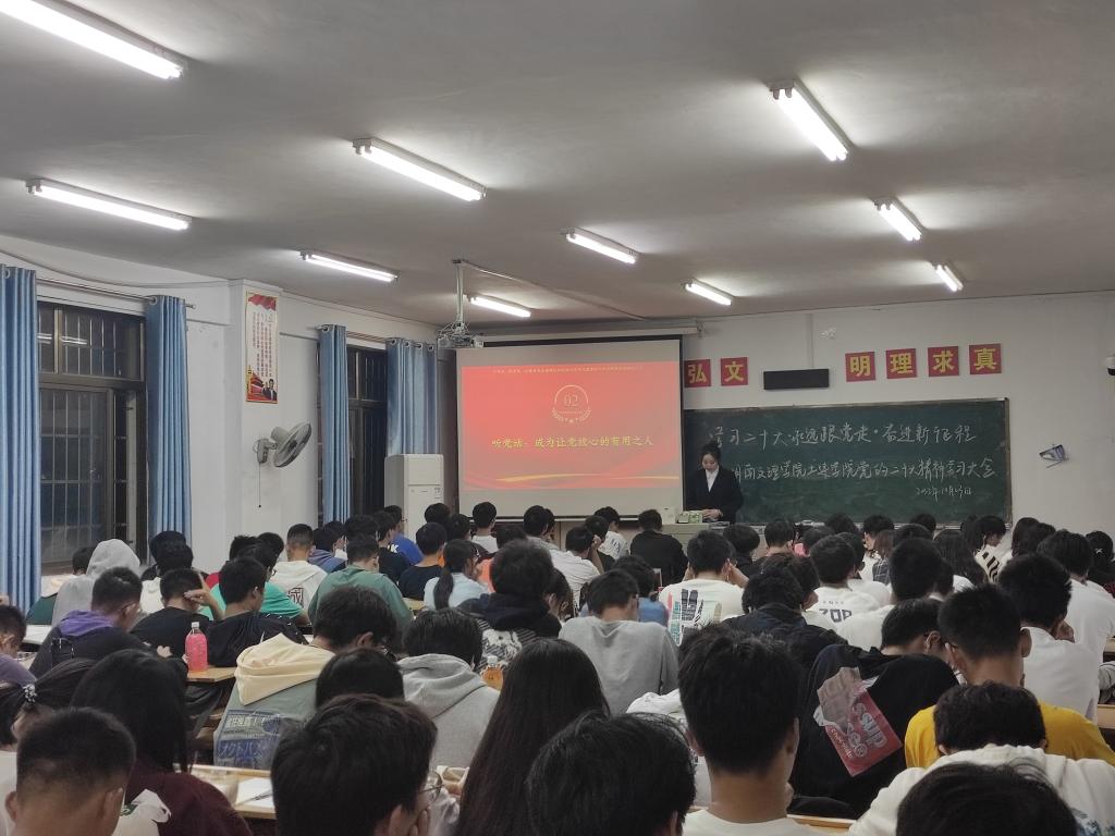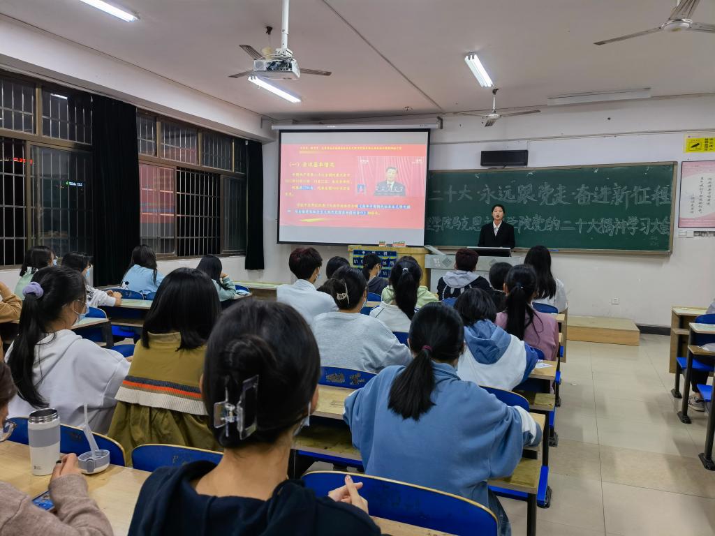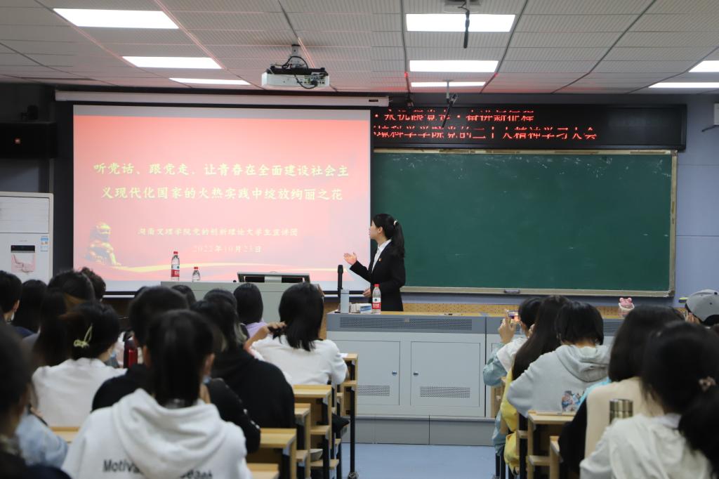 本网讯(记者 易姣 各学院供图)为深入学习贯彻党的二十大精神,引领我校青年大学生坚定不移听党话、跟党走,成为有理想、敢担当、能吃苦、肯奋斗的新时代好青年,10月23日晚,学校马克思主义学院组织“湖南文理学院党的创新理论大学生宣讲团”成员分赴18个教学院,与青年大学生一起学习党的二十大精神。