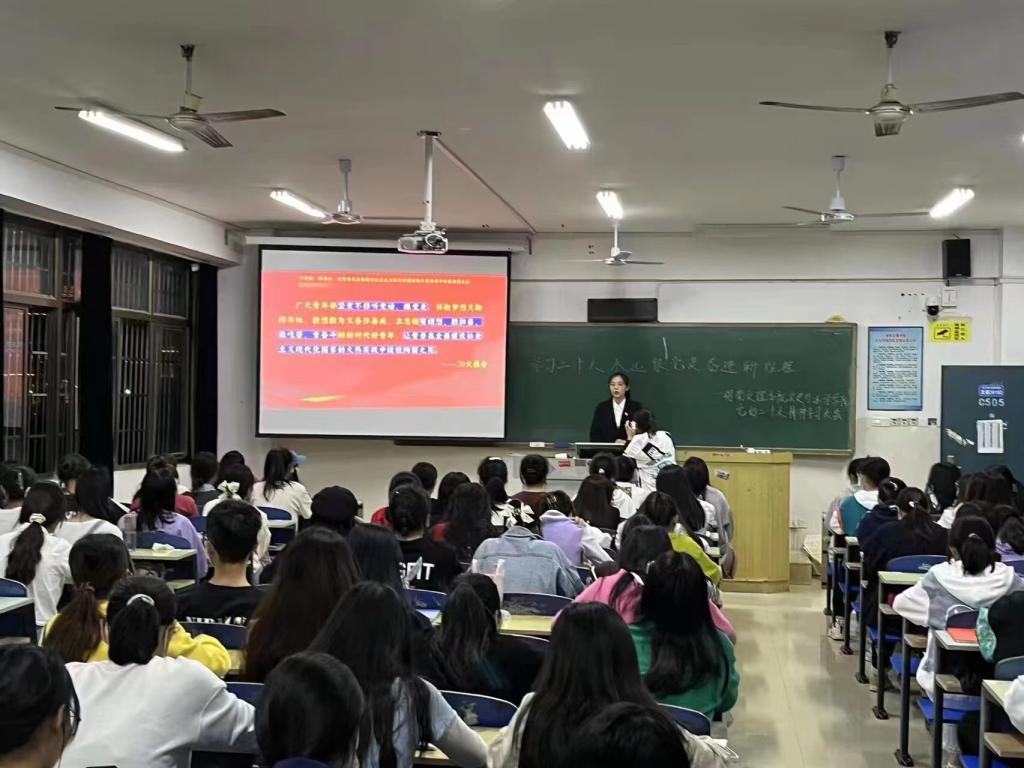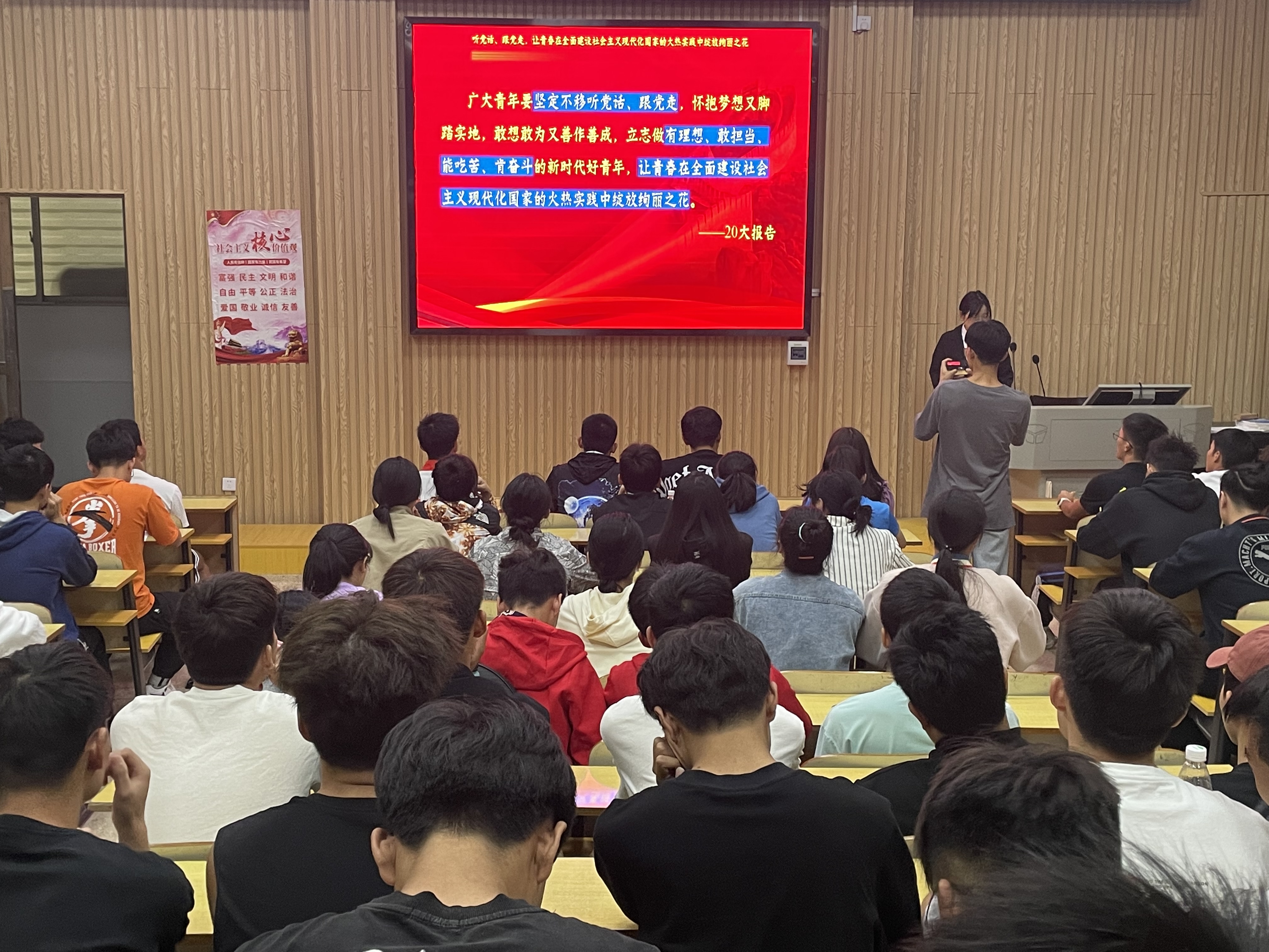 为做好本次集中学习活动,马克思主义学院教师组织宣讲成员开展集中学习、备课,并结合学校工作实际,形成了统一的教案。学习过程中,领学人以《听党话、跟党走,让青春在全面建设社会主义现代化国家的火热实践中绽放绚丽之花》为题,通过课件展示、实例讲解等形式,围绕党的二十大精神,从“了解党的二十大的基本情况”“听党话:成为让党放心的有用之人”“我们应该怎么样提升我们的能力”三个方面,结合党对青年的期望,告诉青年学生既要怀抱梦想又要脚踏实地,要能吃苦、肯奋斗,成为党所期盼的有用之人。学习报告倡议青年学子要洞察时代大势,增强历史主动;要学习懂、弄通、悟透新思想;要弘扬伟大建党精神,明理增信崇德力行,坚定跟党走的信念,提升跟党走的能力。