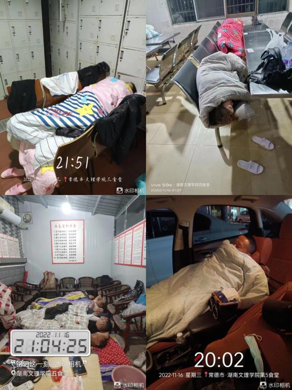 学校各个食堂工作人员在接到通知后,二话不说,立即把被褥、行李搬进了食堂安心“住”了下来。白天,他们为两万四千名师生的正常用餐提供保证。深夜,结束一整天的忙碌后,他们就着食堂的就餐椅、食物运输货车的座位、仓库会议室开地铺休息。次日天还未亮,他们赶紧起床收拾临时搭好的“床铺”,又开始投入到新一天的工作。“封校了,但我们要让孩子们照样能吃上热乎乎的早餐”,食堂一名工作人员说。