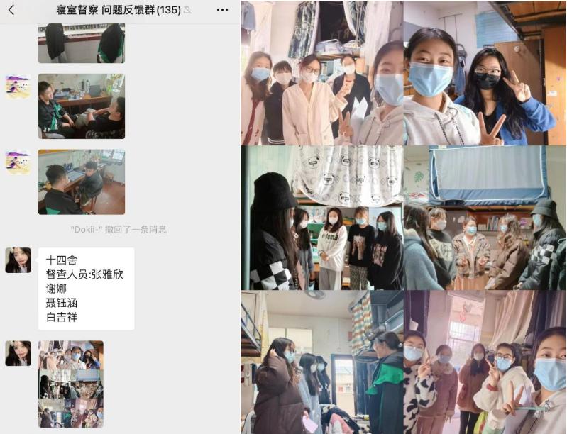 排班表制定好后,学生楼长们每天都到自己所对接的寝室,督查宿舍同学上网课、寝室卫生、消防安全等情况。同时,楼长们还自发组织开展“宿舍防疫恳谈会”,疏导同学们在封校管理期间的负面情绪,收集同学们遇到的困难和问题,统一反馈给学院老师。