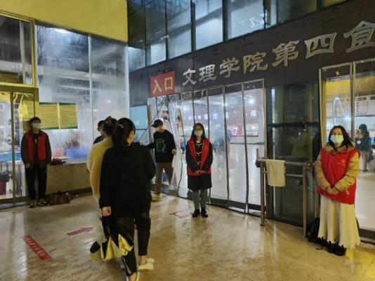 连日来,学生党员和入党积极分子勇挑重担,主动参与值班值守、围墙执勤,他们不惧寒冷,始终坚守岗位。核酸监测现场同样有他们的身影——排查登记、温馨提示、秩序维护……他们引导学生有序扫码、做核酸,并逐栋逐间进行督促,确保核酸检测不漏一人。此外,他们还积极参与寝室走访,安抚同学的紧张情绪,督促同学学习,为同学们解读宣传防疫防控政策,尽力解决学生“急、难、愁、盼”问题。