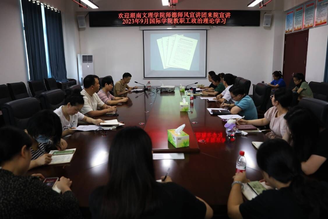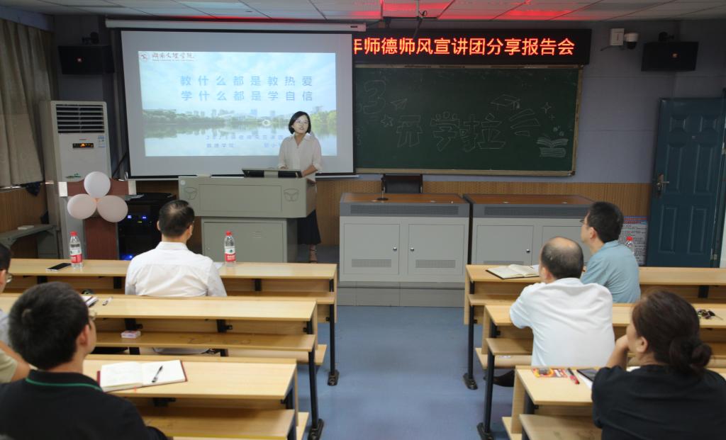 本网讯(教师工作部 供稿)躬耕教坛,强国有我。9月5日下午,学校举行师德师风宣讲团第六轮集中分享报告会。宣讲团成员分成五个小组分别到生命与环境科学学院、医学院、计算机与电气工程学院、机械工程学院、土木建筑工程学院、国际学院进行宣讲。