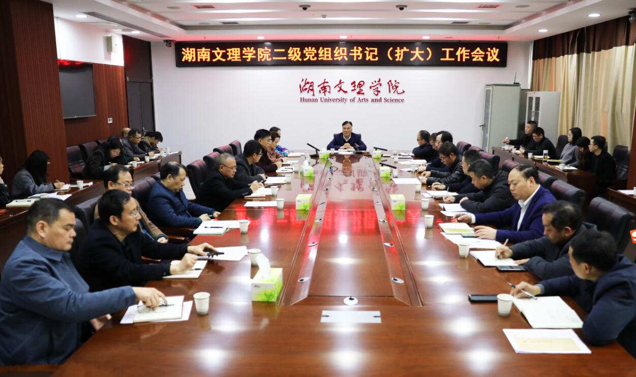 本网讯(通讯员 侯伟 摄影 易灿 杜俊朗)为进一步加强党对学校工作的全面领导,强化二级党组织的政治功能,压紧压实党建工作责任,3月21日上午,湖南文理学院二级党组织书记(扩大)工作会议在逸夫楼A305召开,学校党委副书记兼组织部部长李红革,组织部全体工作人员,各二级党组织书记、教学院专职组织员参加会议。会议由组织部常务副部长李虹主持。