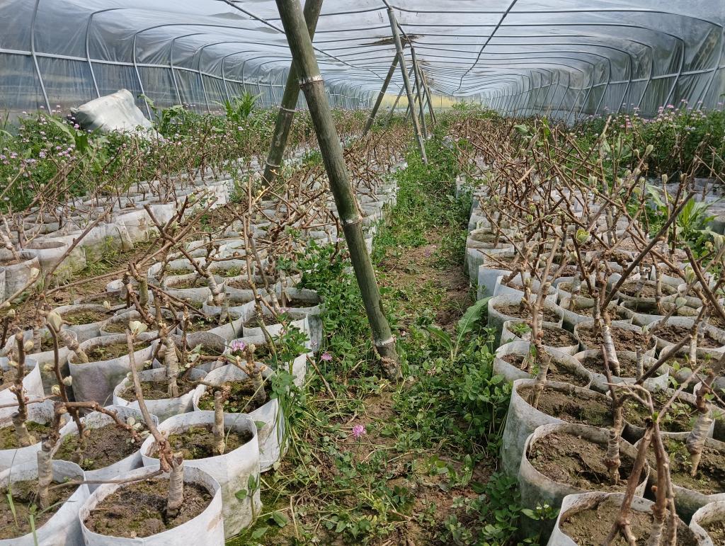 在大棚中培育好的猕猴桃苗