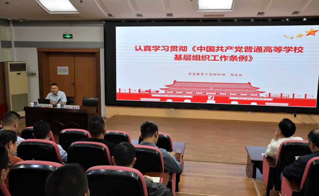 刘吉延的报告从修订《条例》遵循的主要原则、《条例》的主要内容、贯彻《条例》要注意的几个重点三个方面对《条例》进行了全面详细而又重点突出的解读。刘吉延在报告中指出,修订《条例》是新时代坚持和加强党对高校全面领导的一项标志性举措,对推进高校党的工作制度化、规范化、科学化发挥了重要作用,为高校培养社会主义建设者和接班人提供了坚强的组织保证。