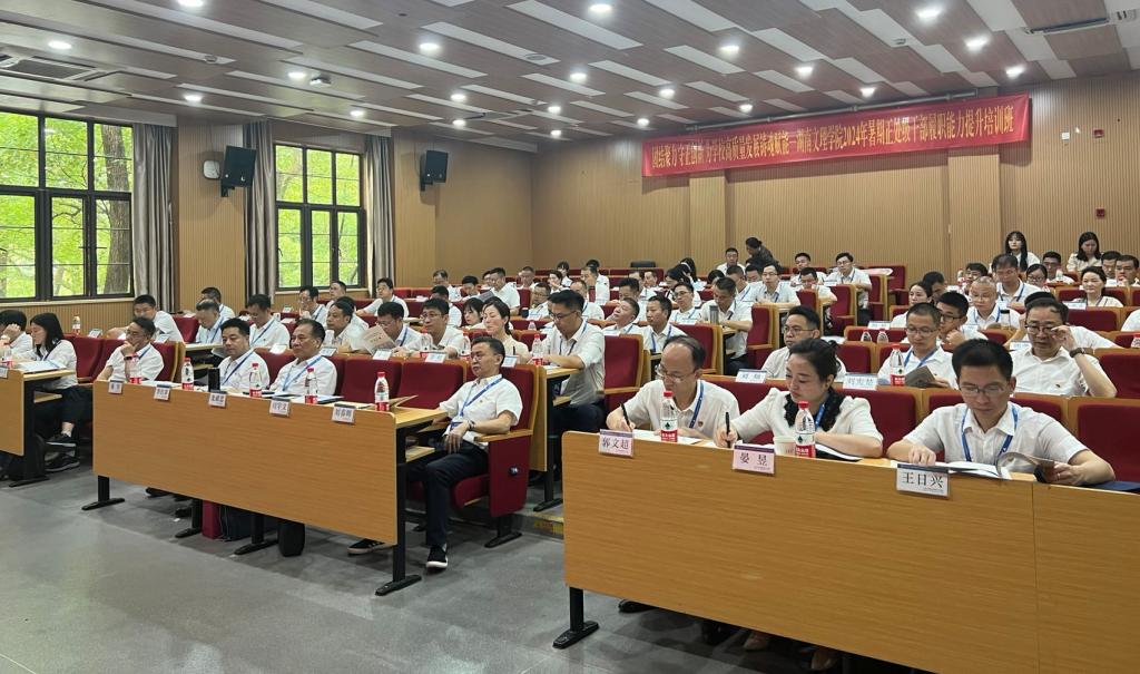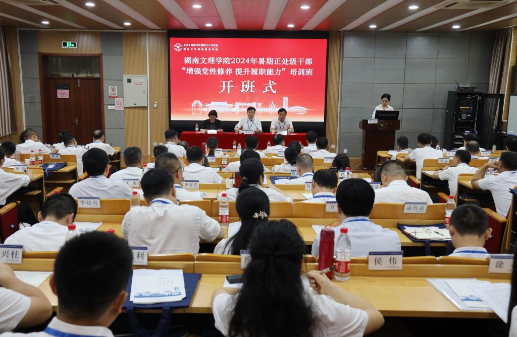 本网讯(文/图 杨静)7月11日,学校2024年暑期正处级干部“增强党性修养 提升履职能力”培训班在浙江大学开班。学校党委书记龙献忠,党委副书记、校长刘宇文等全体校领导,全国政协委员、浙江大学继续教育学院副院长雷群芳以及全体学员参加开班仪式。