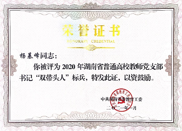 学院党委全面落实党的教育方针,以党建引领立德树人根本任务,强化基层党组织建设,推动党建理念、模式及方法的创新,将党建工作要求与教育教学、科学研究、社会服务等业务工作深度融合,充分发挥各方核心要素,营造全员育人、事事育人、处处育人的氛围,构建科学合理的“党建+”工作体系。 5年来,学院教工党支部被评为全国党建工作“样板支部”,学院党委被认定为湖南省高校党建工作“标杆院系”,学生第一党支部获得学校党建工作“样板支部”称号;2人获得湖南省高校教工党支部书记“双带头人”标兵,10人获得学校“优秀共产党员”、“优秀党务工作者”或“优秀教师”,发展了203名学生党员并转正148名预备党员。