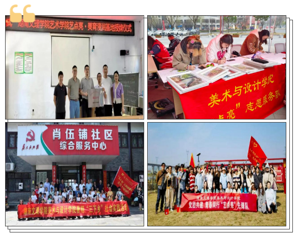 学院以党建为引领,打造“艺点亮”品牌,致力于用艺术服务乡村振兴和乡村中小学美育,通过点亮乡村、点亮心灵等服务活动,培养学生爱国力行的责任感和使命意识。
