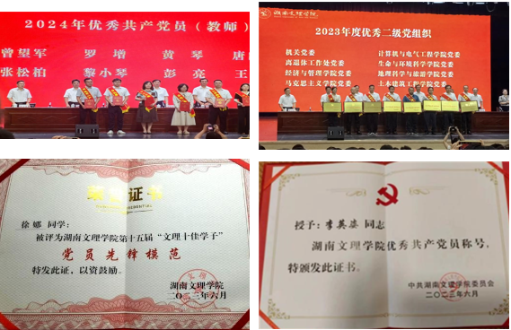 多措并举,加强党建与业务融合。学院坚持党建引领,将党建工作充分融入各项业务工作中。创新党建活动形式,如开展党员志愿服务、学术沙龙、学习考察等,增强党组织的凝聚力和战斗力。3年中,4名党员教师获批国家自然科学基金,刘晓瑞入围2024湖南省课程思政教学竞赛决赛,发挥了良好的示范作用。