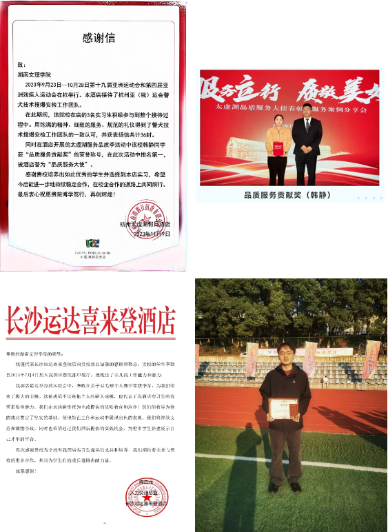 精准发力,形成“三全育人”体系。注重全员育人、全程育人与全方位育人的有机结合,全面推进“十大”育人体系一体化建设。鼓励跨年级和跨专业组队学生参加各项竞赛,提高学生的创新和实践能力。学院在各项学科竞赛成绩斐然,如第十届湖南省大学生旅游综合技能竞赛中参赛成绩全省第一并获得优秀组织奖;第四届酒店管理商业策划创意大赛成绩居全省前列并获得优秀组织奖等。配强考研导师和就业指导老师,为学生提供专业精准的指导,学院连续2年考研率持续大幅上升,从7.1%提升至16.3%。大力开展创业教育,已有“无虑咖啡”“一湖茶社”“地旅小太阳”“经纬研学”等4支队伍入驻学校创业孵化基地。