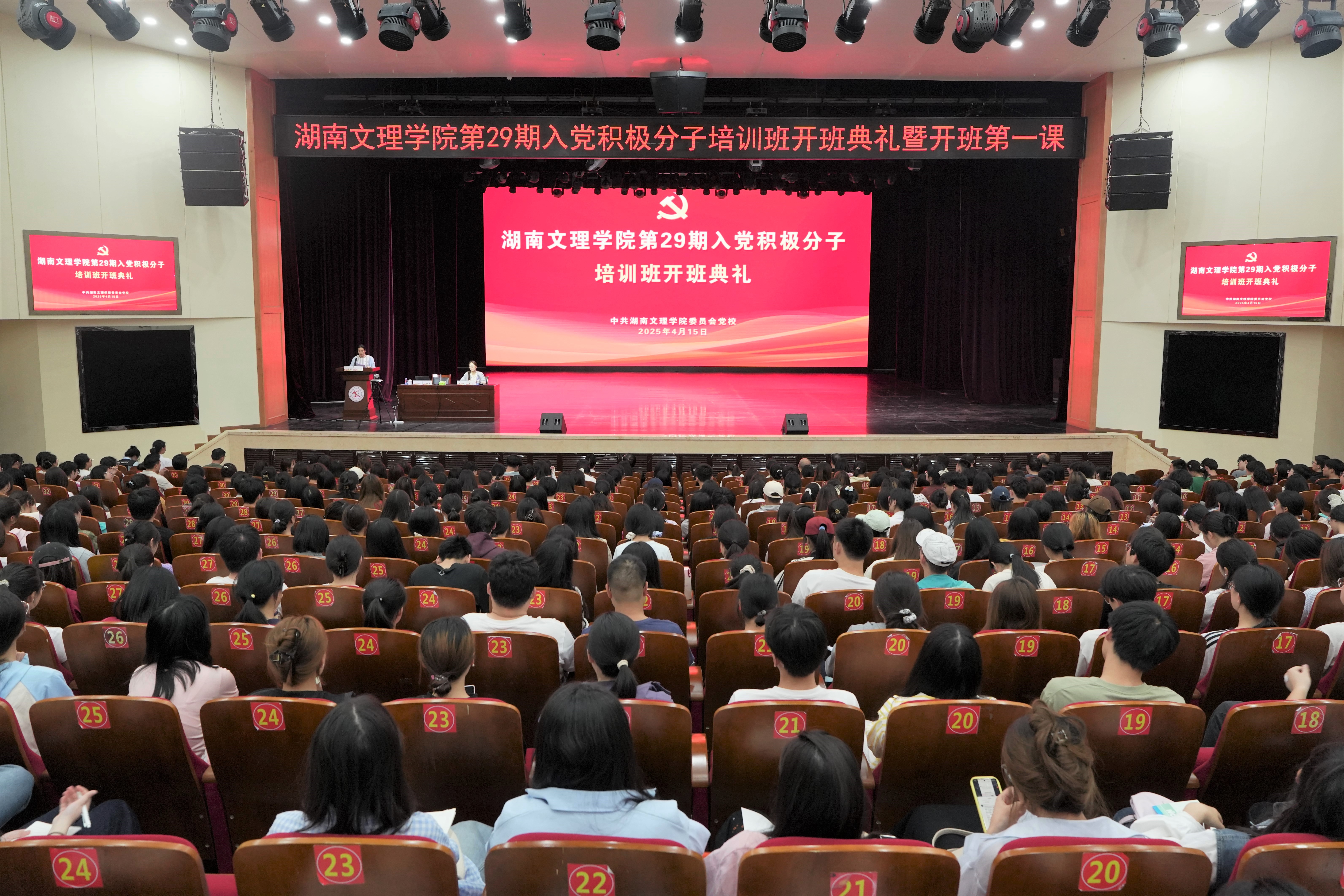 本网讯(文字 夏焱 图片 麦希希 覃雪芸)4月15日晚,学校第29期入党积极分子培训班在艺术中心开班,来自18个分党校的1800余名入党积极分子参加培训。学校党委副书记、党校校长李红革作开班动员讲话。组织部常务副部长、党校常务副校长李虹主持开班仪式。