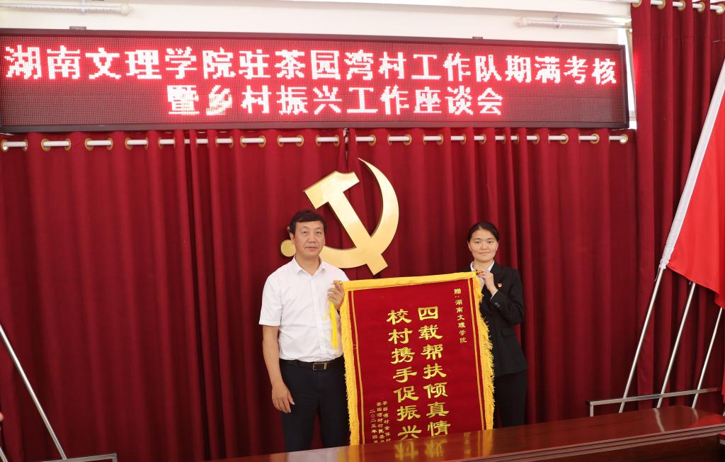 本网讯(文图 袁勇军)4月25日,湖南文理学院驻茶园湾村工作队期满考核暨乡村振兴工作座谈会在石门县子良镇茶园湾村召开。学校党委副书记、校长刘宇文,党委副书记李红革,石门县县委副书记、县长李长春,县政府副县长万勇平出席会议,石门县委组织部、县政府办、子良镇党委政府主要负责同志,我校党政办、组织部、宣传统战部、驻村工作队负责人与工作人员参加会议。李红革主持座谈会。