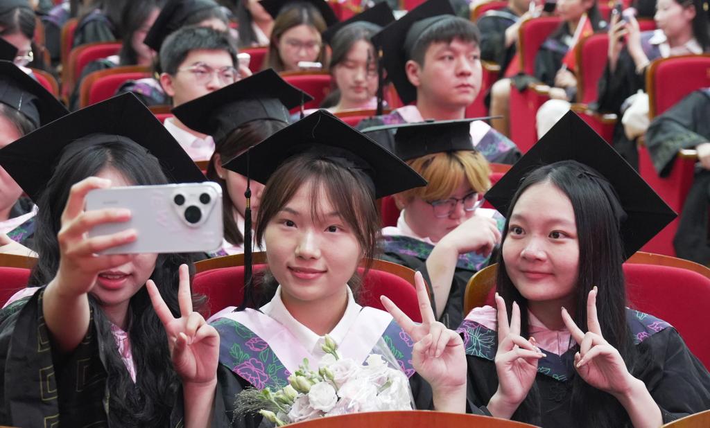 学校2025届毕业生及家长代表,机关教辅单位全体教职工、各教学院教师代表、校友代表以及各教学院学生代表在现场观礼。(一审 易姣 二审 杨静 三审 袁勇军)