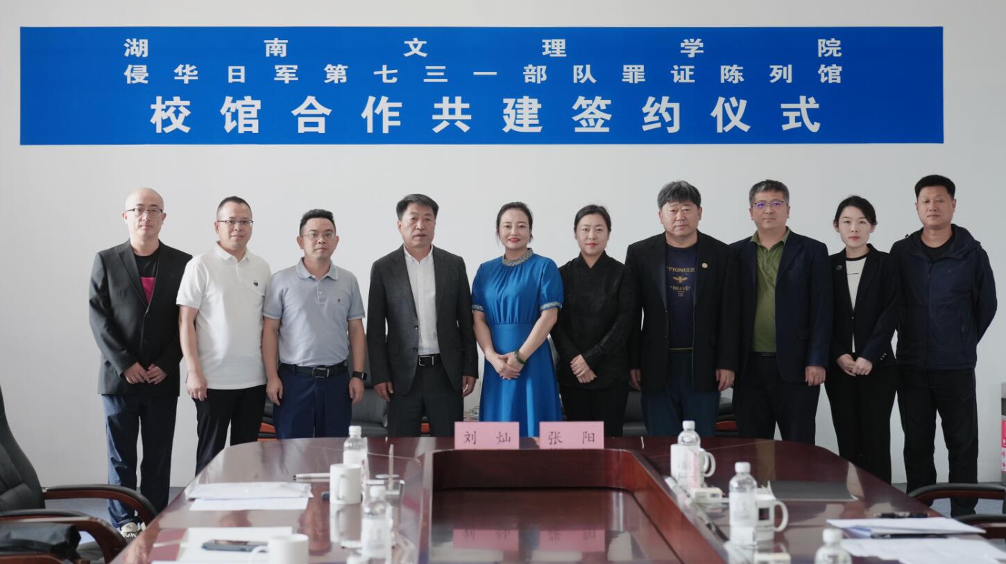 6月12日,校馆合作共建签约仪式在陈列馆会议室举行,侵华日军第七三一部队罪证陈列馆馆长金成民、党支部书记张景峰、副馆长张阳出席签约仪式,张阳主持签约仪式。与会人员围绕湖南文理学院抗战文化馆升级改造、首批共享档案与影像资料范围划定、和平主题系列活动方案等议题展开了深入研讨,并签订了相关合作协议。根据合作协议,双方将围绕“展馆共建、史料共享、学术共创、教育共融、人才共育” 五大方向展开合作。陈列馆提供的首批侵华日军细菌战罪证档案与影像资料在签约仪式上正式移交给我校,这批罪证资料涵盖侵华日军七三一部队细菌战相关档案、影像及实物史料副本,经学校专家教授系统整理后将逐步向社会公开,为侵华日军细菌战罪证研究与和平教育注入新的实证力量。