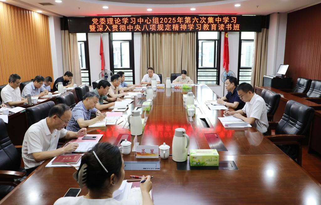 本网讯(文字 陈馥珺 图片 杨静)6月26日上午,学校党委理论学习中心组2025年第六次集中学习暨深入贯彻中央八项规定精神学习教育读书班在逸夫楼A704举行。省委教育工委指导专家、湖南理工学院原党委书记李明,专家组成员、湖南理工学院党委宣传部副部长楚霖到会指导。我校党委副书记、校长刘宇文主持学习并作总结讲话。全体党政领导班子成员、党务部门主要负责人参加学习。