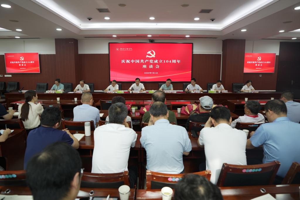 本网讯(文字 袁勇军 图片 黄蕾 袁熙茗)弘扬伟大建党精神,汲取砥砺前行力量。7月1日下午,湖南文理学院庆祝中国共产党成立104周年座谈会在逸夫楼B603会议室举行。学校全体党政班子成员,“光荣在党50年”的老党员代表、优秀教师党员和优秀学生党员代表、预备党员代表、各二级党组织书记以及党务部门主要负责同志参加会议。学校党委副书记李红革主持会议。