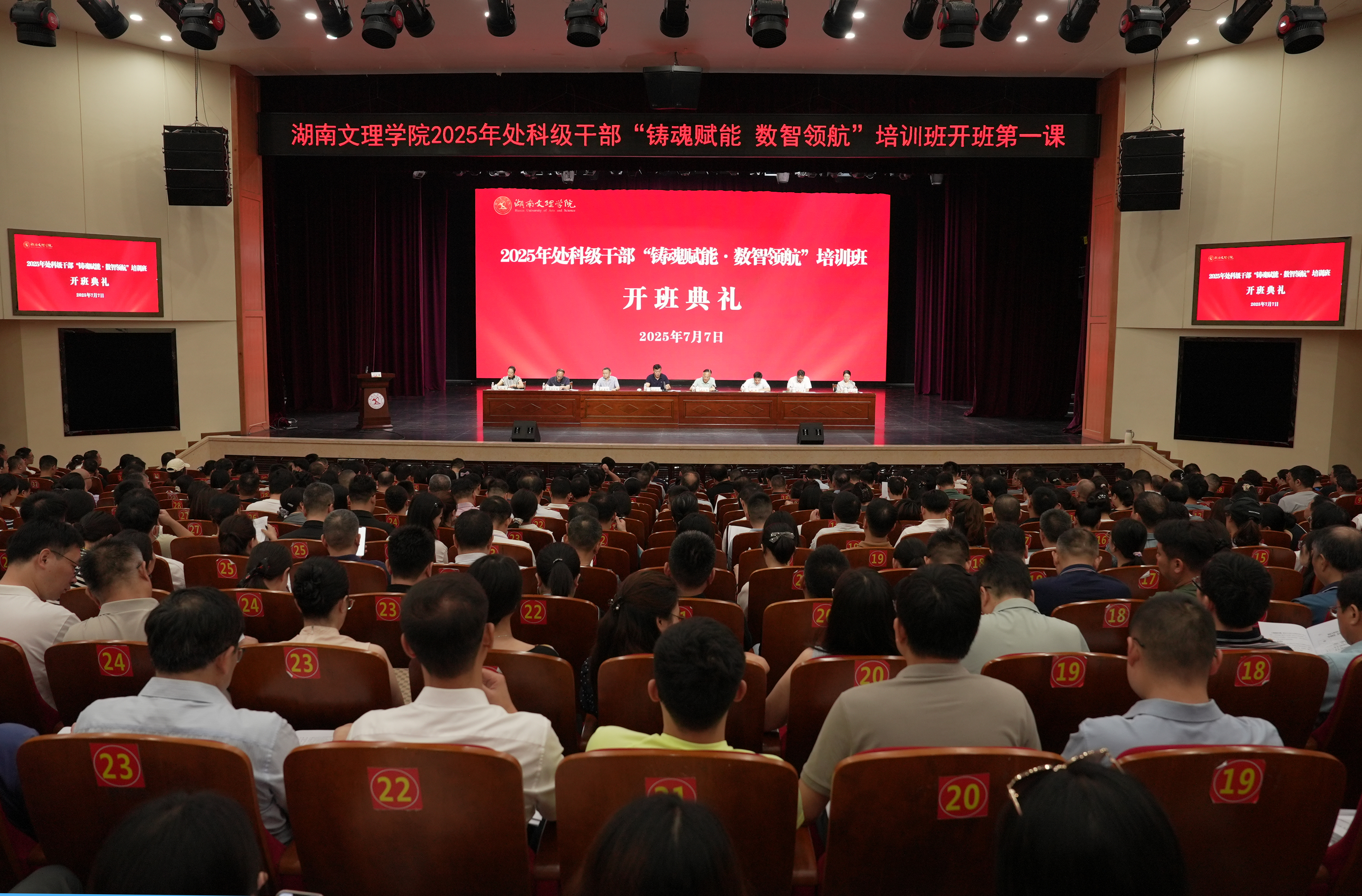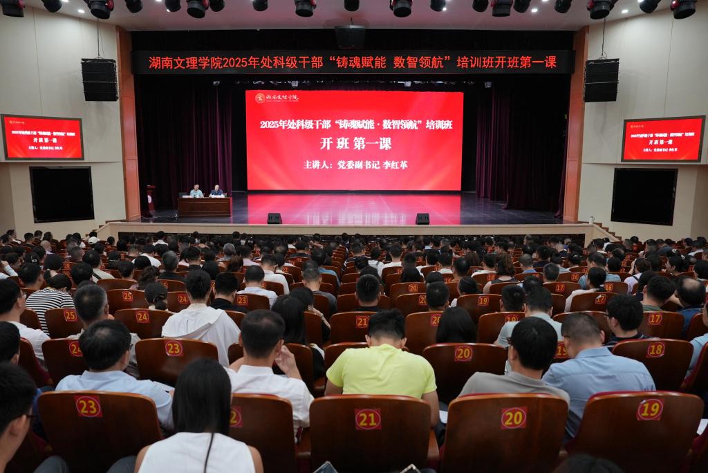 本网讯(文字 易姣 图片 杨静 韩康桥)7月7日,学校2025年干部“铸魂赋能 数智领航”培训班开班典礼在艺术中心举行。学校全体党政班子成员,处科级干部、青年人才培养岗教师及全体专职辅导员参加开班典礼。校党委副书记李红革主持开班典礼。