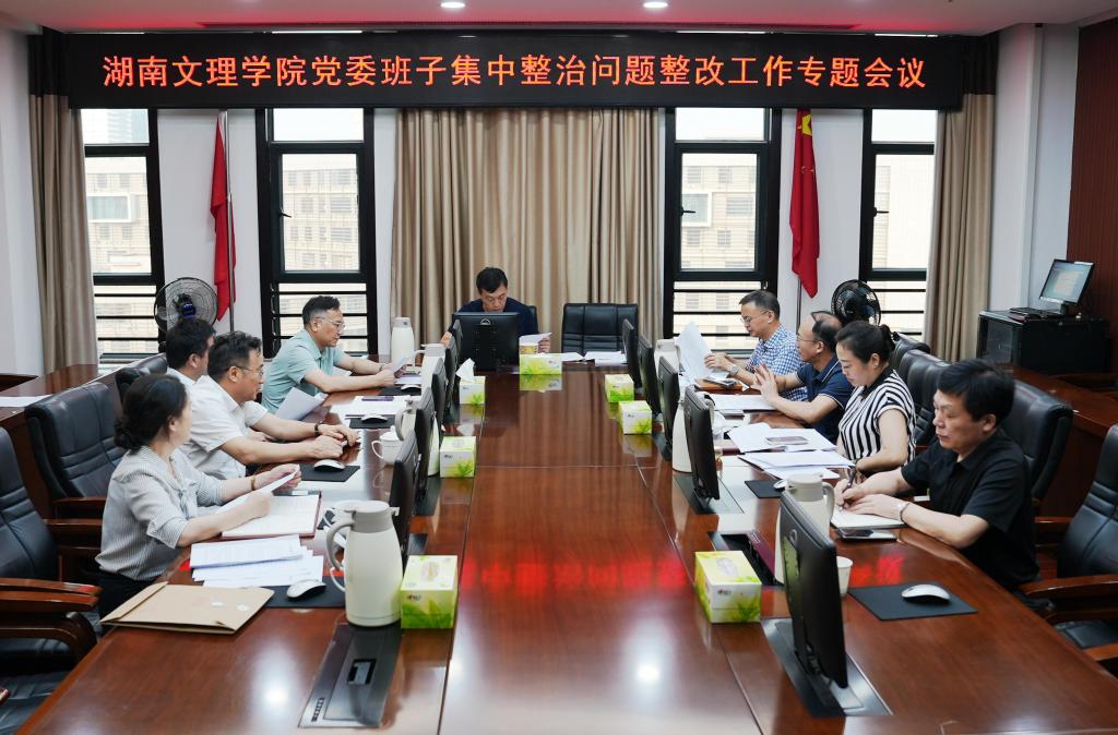 本网讯(文字 袁勇军 图片 易姣)7月7日,党委书记刘宇文主持召开学校党委班子集中整治问题整改工作专题会议,深入学习贯彻习近平总书记关于加强党的作风建设重要论述、中央八项规定及其实施细则精神,研究推进集中整治工作,推动学习教育走深走实、见行见效。学校全体党政班子成员出席会议,问题整改牵头部门主要负责人、学习教育工作专班各组负责人参加会议。
