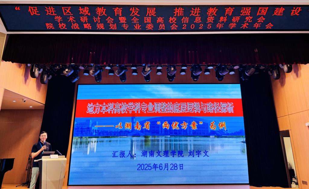 我校党委副书记、校长刘宇文作了题为《地方本科高校学科专业调整的底层逻辑与路径探析》的大会主旨报告,报告紧扣国家及省级政策导向,从我国高校学科专业调整的底层逻辑出发,结合湖南省高校学科专业调整方案及我校实践落实情况,系统阐释了学科专业调整从计划主导、市场适配到国家战略牵引的历史逻辑演进,明确指出地方高校改革须立足国家战略引领、经济社会发展需求与学科生态建设,积极稳妥推进。报告还分享了我校“顶层设计-产业聚焦-动态机制-内涵重塑-师资夯实”的专业调整实践路径,为地方高校学科专业调整提供了实践方案。(一审 易姣 二审 杨静 三审 袁勇军)