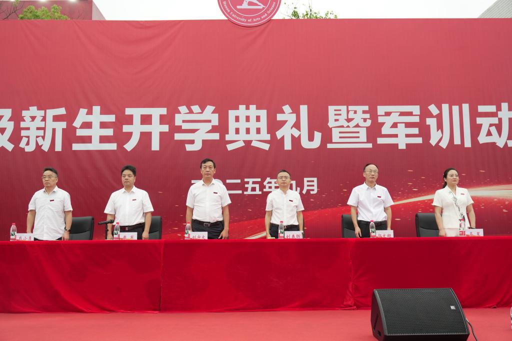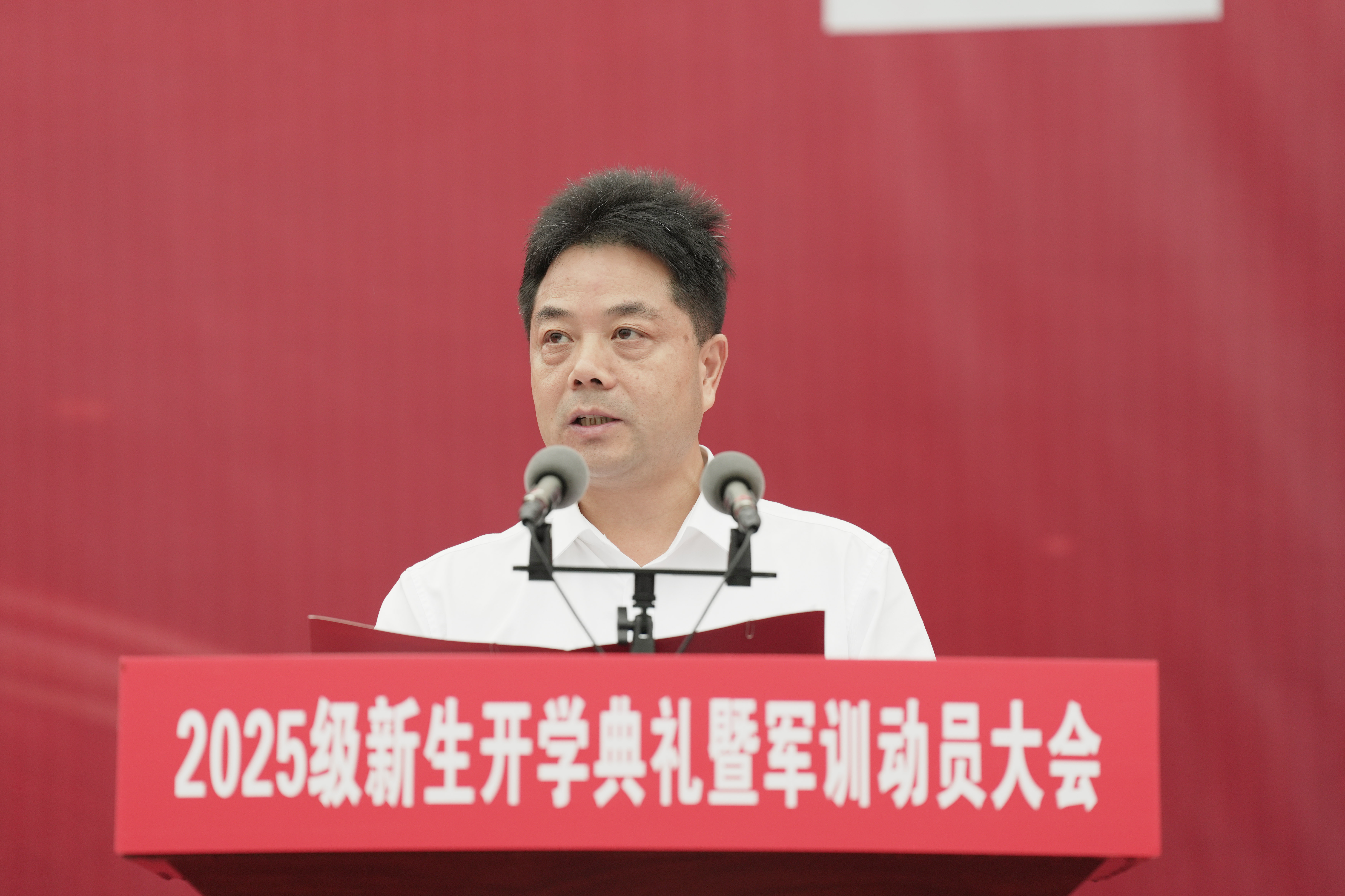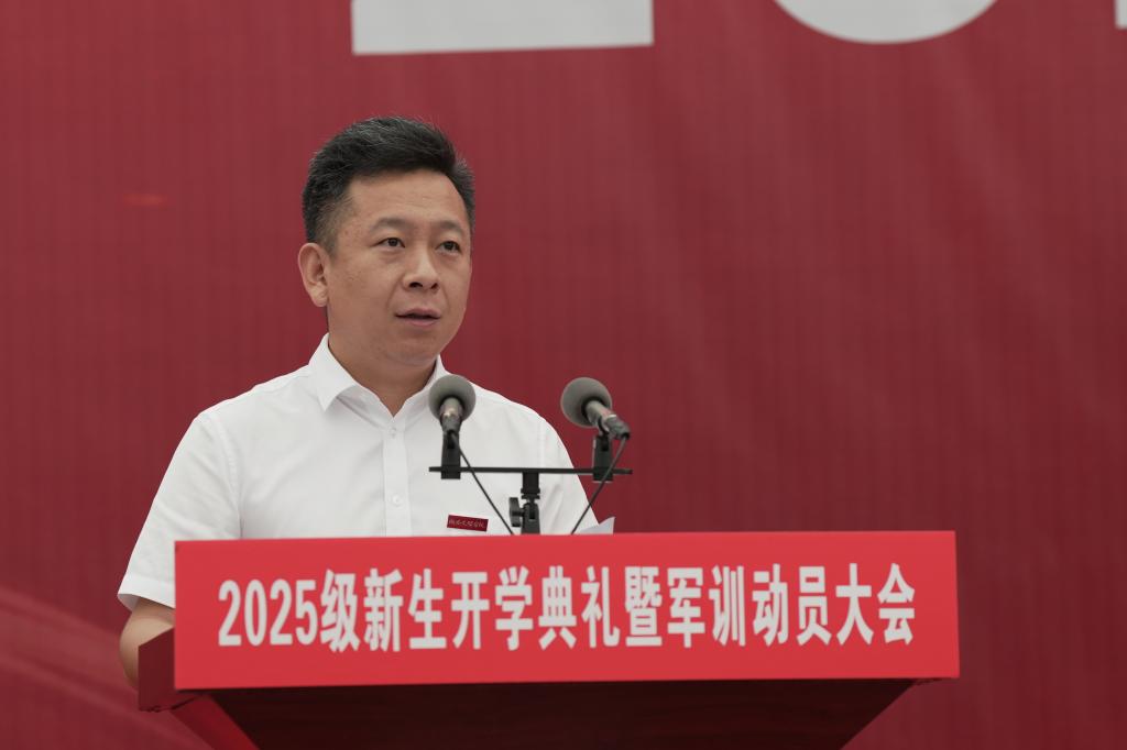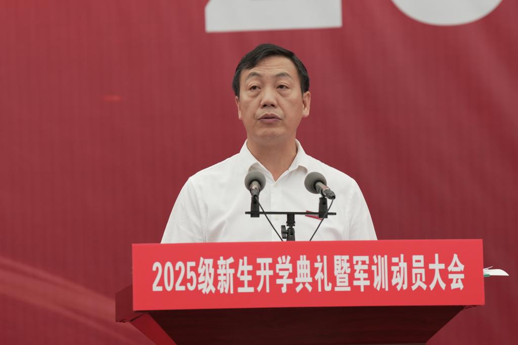 本网讯(文字 杨静 岳浩然 图片 谭勇 陈美莲 韩康桥)9月14日早上,我校2025级新生开学典礼暨军训动员大会在东校区田径场举行。学校党委书记刘宇文,党委委员、副校长刘春晖、戴军,党委委员、纪委书记郭文超,副校长肖小勇,党委委员、副校长晏昱等出席典礼并在主席台就座。学校机关教辅单位主要负责人,各教学院书记、院长、副书记、新生年级辅导员,2025级6700余名本科生、硕士生参加大会。大会由戴军主持。