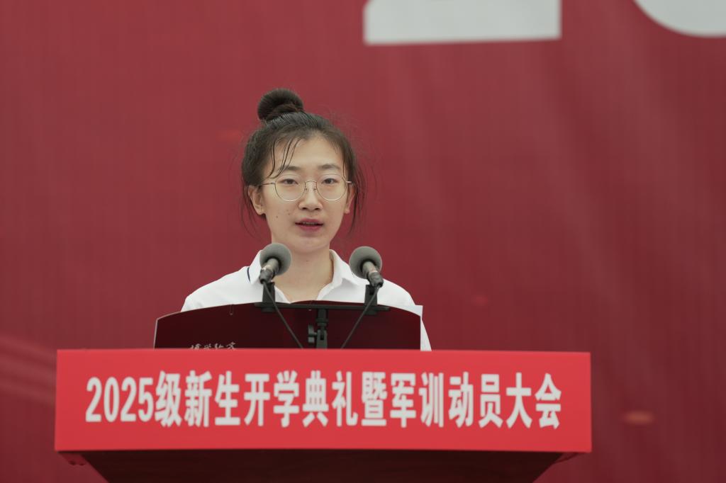 典礼上,教师代表、湖南省芙蓉学者、2025年度常德市模范教师李叶林教授,老生代表、计算机与电气工程学院2023级王竞恺同学,研究生新生代表韩钰婷同学,本科新生代表、生命与环境科学学院王含伊同学,教官代表、国际学院欧鸣杰同学依次上台作了发言。