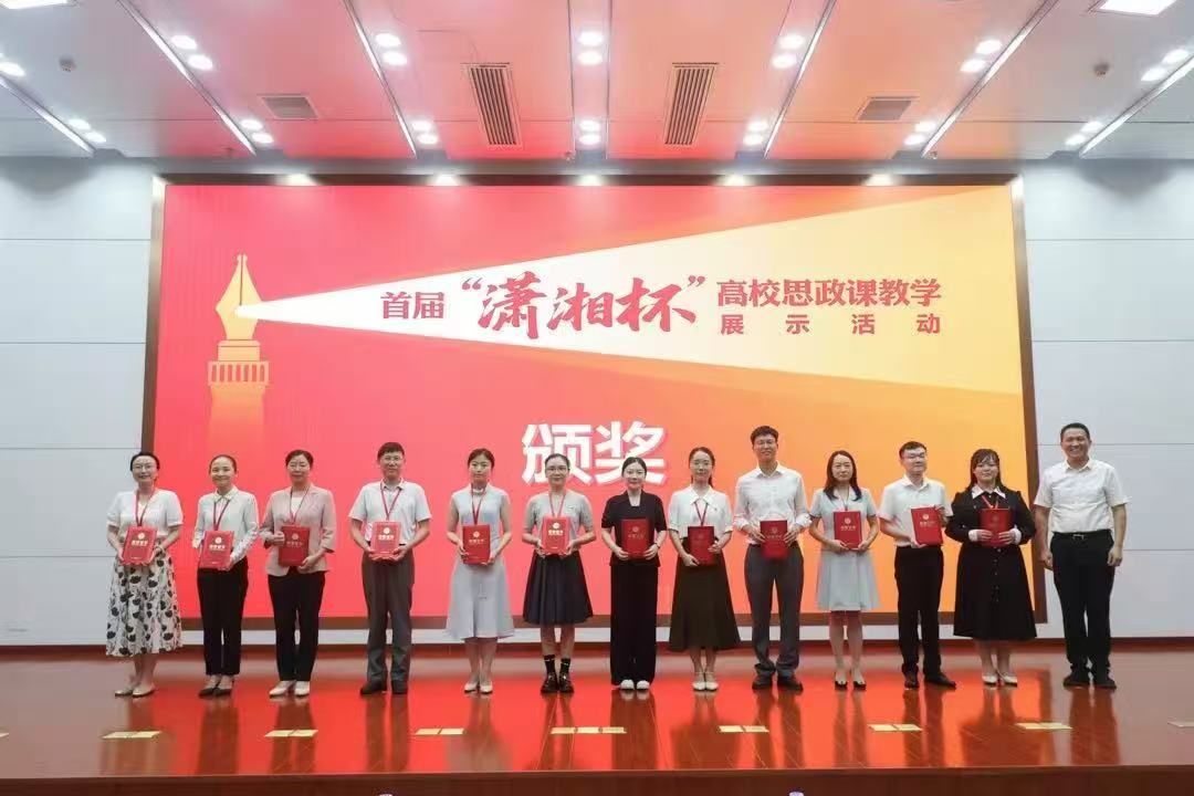 本网讯(马克思主义学院 供稿)9月22日,湖南省教育厅公布了首届“潇湘杯”高校思政课教学展示活动评奖结果。我校马克思主义学院教师在本次教学展示活动中表现优异,在本科“思想道德与法治”组中,雷洁老师巧妙运用鲜活案例、生动语言,将深奥理论转化为通俗表达,最终荣获特等奖,其教学团队被评为优秀教学团队。此外,王宏炜、彭伟、陈佳、罗尧四位老师及其教学团队荣获二等奖。我校总成绩名列同类院校前茅,充分展现了我校思想政治理论课教师扎实的教学功底和良好的专业素养。