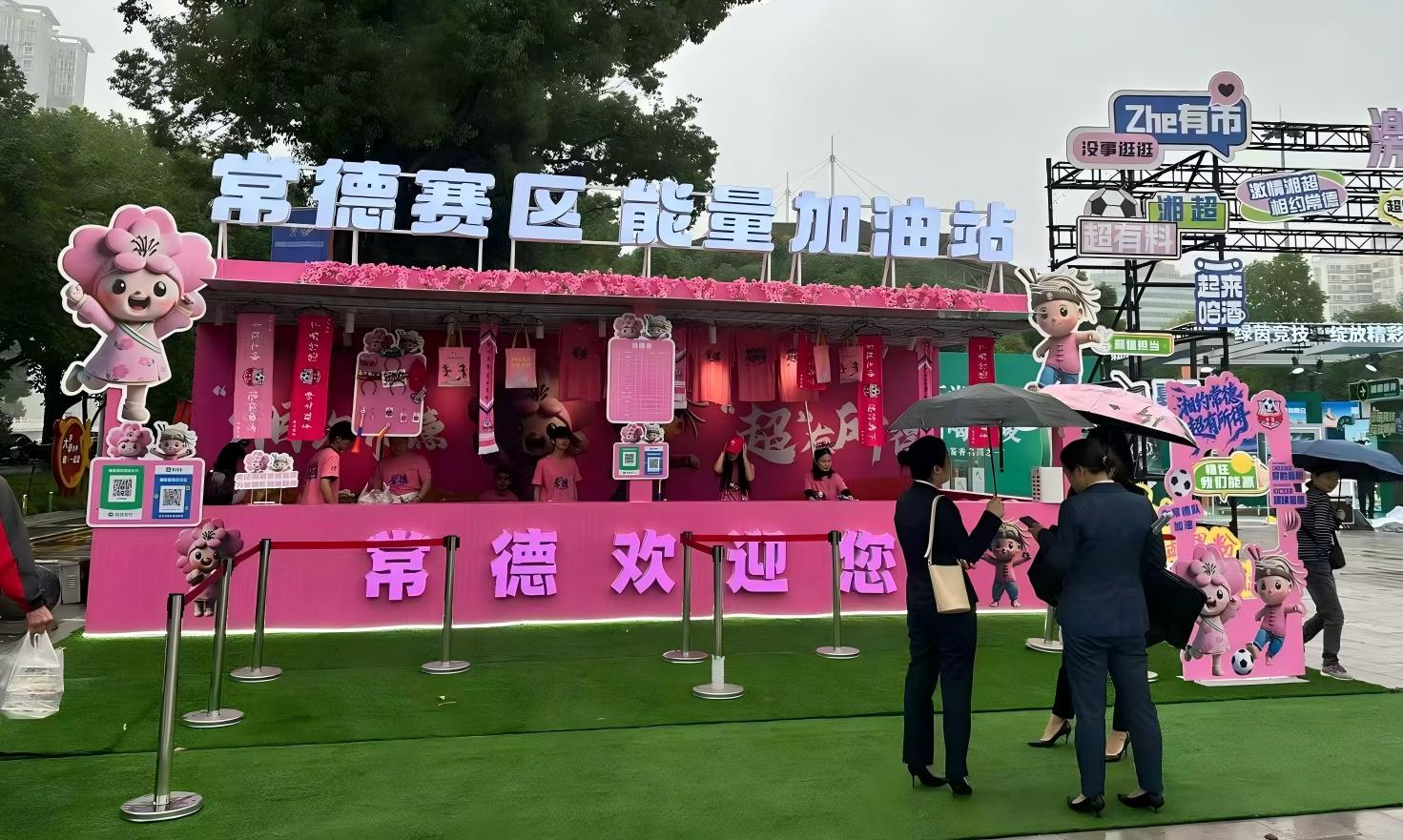 锚定湘超流量风口,粉色IP引爆赛场消费。作为湖南省内顶级足球赛事,“湘超”联赛自带高关注度与话题热度。“霹雳笋设计”团队创始人彭景介绍说,凭借对体育IP商业化的独到洞察,团队于2024年9月成功承接了“湘超”常德赛区整体IP视觉设计项目。团队将机械工程专业的结构美学与艺术设计的创意思维深度融合,提炼常德桃花源标志性的“桃花粉”元素,打造出涵盖球迷服饰、赛事周边、地域文化手办等系列文创产品。产品一经推出便引爆赛场消费,单场销售额突破10万元,相关话题在抖音等社交平台迅速发酵,实现“赛事流量”向“消费转化”的高效落地。