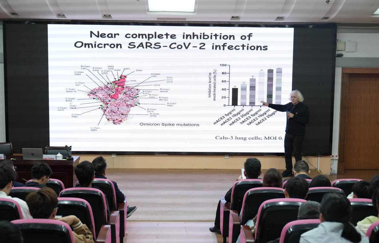 Josef Penninger教授在报告中系统地介绍了从ACE2的发现到其在COVID-19中的关键作用,以及类器官技术在病毒研究和治疗开发中的应用,展示了从基础科学到临床转化的完整研究链条。本次学术报告为我校师生在生物医学领域的研究拓展了国际视野,也为相关科研项目的开展提供了宝贵的研究思路。