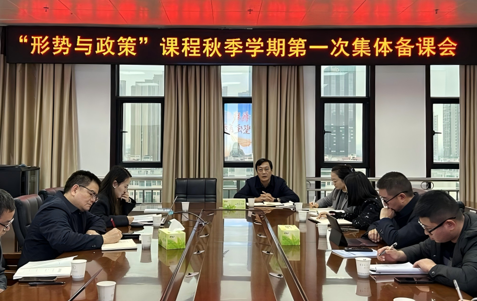 本网讯(马克思主义学院 供稿)为深入学习贯彻习近平总书记关于学校思政课建设的重要指示精神,10月21日下午,学校在逸夫楼B704会议室召开形势与政策课程2025年秋季学期第一次集体备课会。学校党委书记刘宇文,党委副书记李红革,党委委员、副校长晏昱,马克思主义学院党政领导班子和“形势与政策”课教研室全体教师参加集体备课。