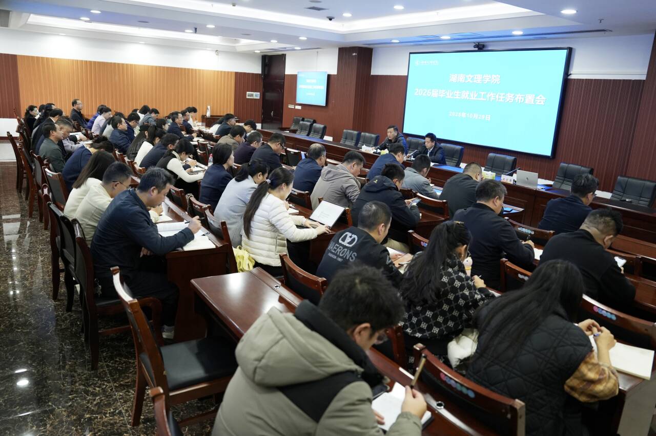 会议聚焦2026届毕业生就业工作作系统谋划与安排部署。招生就业处主要负责人对《湖南文理学院2026届毕业生就业工作实施方案》《湖南文理学院校园招聘“备会制度”工作流程》进行了解读,并就各教学院的具体工作任务作出详细部署。会议特别强调,就业工作需强化过程化管理,并在考核评价中充分体现过程管理,确保各项工作落到实处、取得实效。体育学院、计算机与电气工程学院的主要负责人作表态发言,分享了本学院在推进2025届毕业生就业工作中的举措与经验,汇报了2026届毕业生的就业工作计划,为各学院提供了有益借鉴。