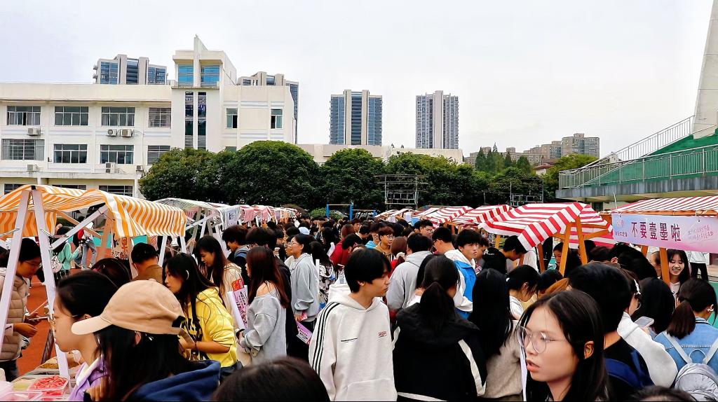 本网讯(文字 胡婷)动感的旋律与青春的创想交织,激情的舞台与热闹的集市共鸣。11月1日,我校第二届音乐节在学校第一田径场举行,45个特色摊位组成的“创创大赶集”同步开市,成为学生创业团队从创意走向市场的“练兵场”,生动诠释了学校将创新创业教育深度融入校园文化的育人新理念。
