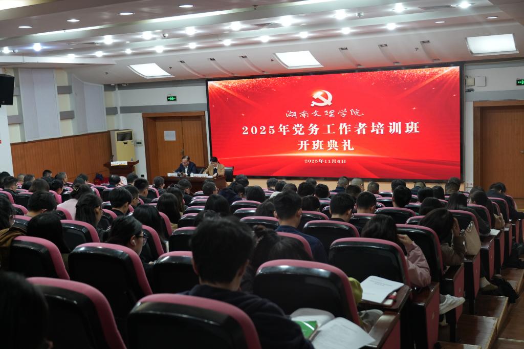 本网讯(文字 汪桐如 曾治霖)11月6日晚,学校2025年度党务工作者培训班开班典礼暨开班第一课在图书馆报告厅举行。学校党委副书记、党校校长李红革出席开班典礼并讲话。全校在职教师及学生党支部书记、专职组织员、教工党支部组织委员,以及组织部、党校全体工作人员出席,组织部常务副部长、党校党务副校长李虹主持典礼。