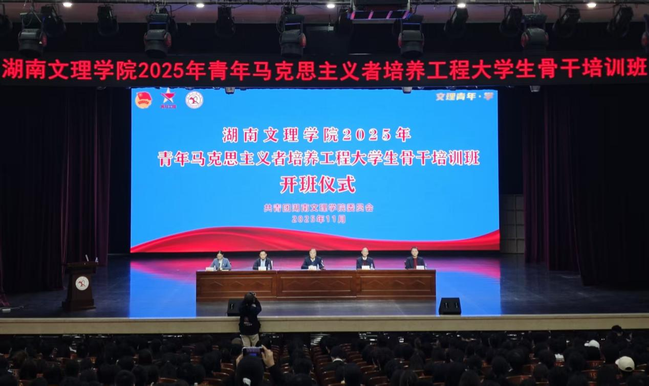 本网讯(团委 供稿 图片 李婉玉)11月11日下午,学校2025年青年马克思主义者培养工程大学生骨干培训班开班仪式在艺术中心举行。学校党委副书记李红革,党委委员、纪委书记郭文超出席开班仪式。宣传统战部、学生工作部、武装部、校团委负责人及相关工作人员,各学院团总支书记,培训班全体学员共计800余人参加仪式。
