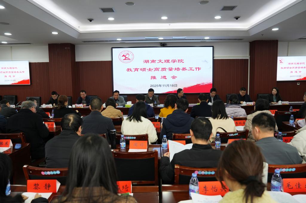 刘宇文在会上讲话。他指出,教育硕士培养是学校服务地方基础教育的重要抓手,必须牢牢把握“为党育人、为国育才”的初心使命,聚焦导师队伍、课程建设、教育实践、科学研究和质量保障五大重点,全面提升培养质量。全校上下要以此次推进会为契机,进一步增强使命感、责任感和紧迫感,凝聚共识、整合资源、深化改革,努力打造具有文理特色的教育硕士培养品牌。