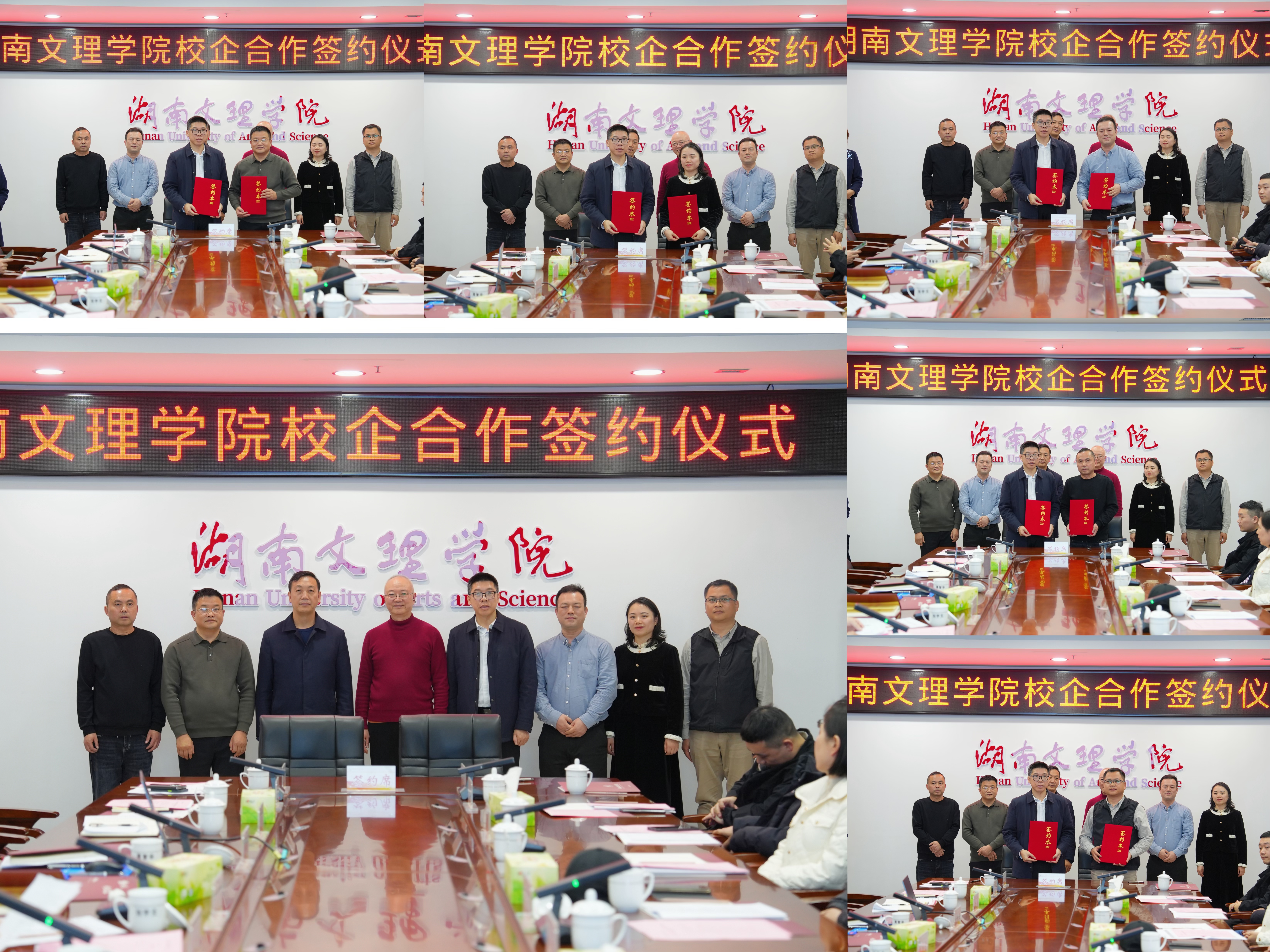 会上,周智华代表学校分别与湖南德人牧业有限公司董事长魏仲珊、湖南武陵酒业有限公司技术研发部经理陈家好、湖南神隆科技有限公司总经理谭石勇、湖南大科城博士科技有限公司总经理陈艳、外囊泡文理(常德)生物科技有限公司技术总监邹晓超签订校企合作协议。刘宇文为魏仲珊、陈家好、谭石勇、陈艳、邹晓超颁发客座教授聘书。