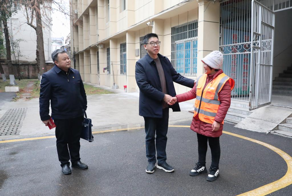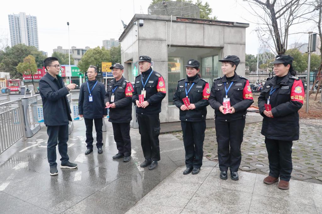 周智华一行先后走访慰问了西校区各个校门门口值班安保人员以及逸夫楼、第二实验楼、化材学院实验楼值守人员,之后又来到东校区走访慰问了校门值班门岗、学生宿舍楼工勤人员。每到一处,周智华都代表学校向大家致以诚挚谢意,感谢他们舍小家为大家,为师生平安过年提供坚实保障,并送上了慰问金。他叮嘱大家在确保工作有序进行的同时,也要保重身体、照顾好家庭,共同欢度马年新春。