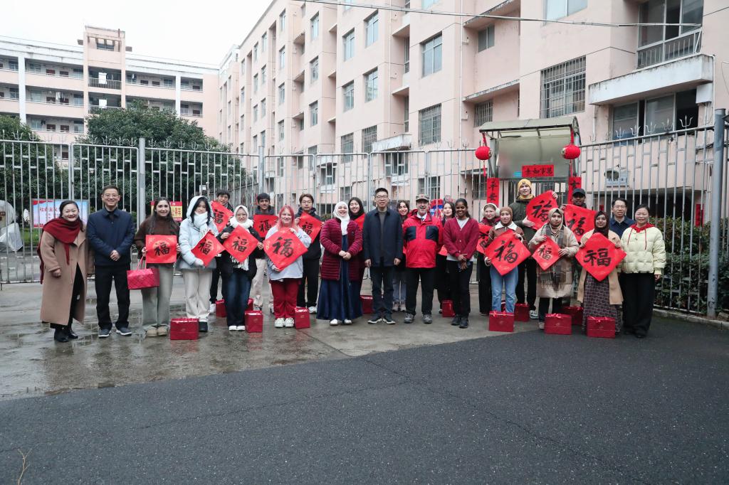 周智华还专程前往留学生公寓,看望留校的外籍教师和留学生。他祝愿大家在校园里度过一个平安喜乐、温馨祥和、富有意义和收获的新春佳节。