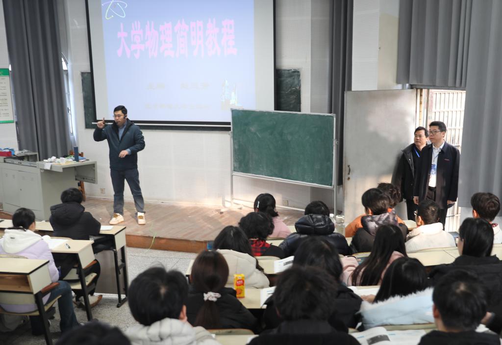 党委副书记、校长周智华(右1)检查课堂教学情况