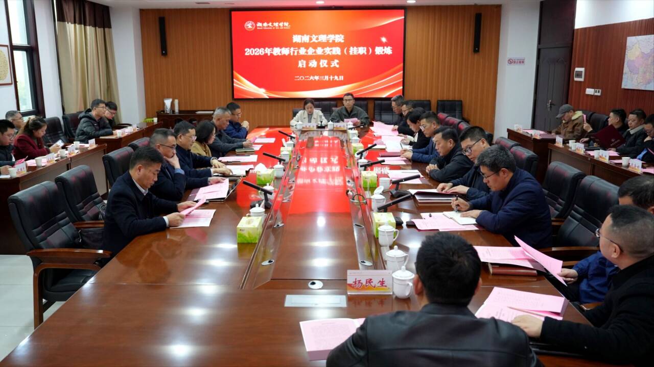 本网讯 (文字 梁佳思 图片 陈可丽)3月19日下午,我校2026年教师行业企业实践(挂职)锻炼启动仪式在逸夫楼A305举行。常德市教育局局长朱文红,我校党委书记刘宇文,党委副书记、校长周智华以及各合作企业代表、中小学学校代表出席仪式。学校相关二级单位负责人及2026年挂职锻炼教师代表参加仪式。周智华主持仪式。