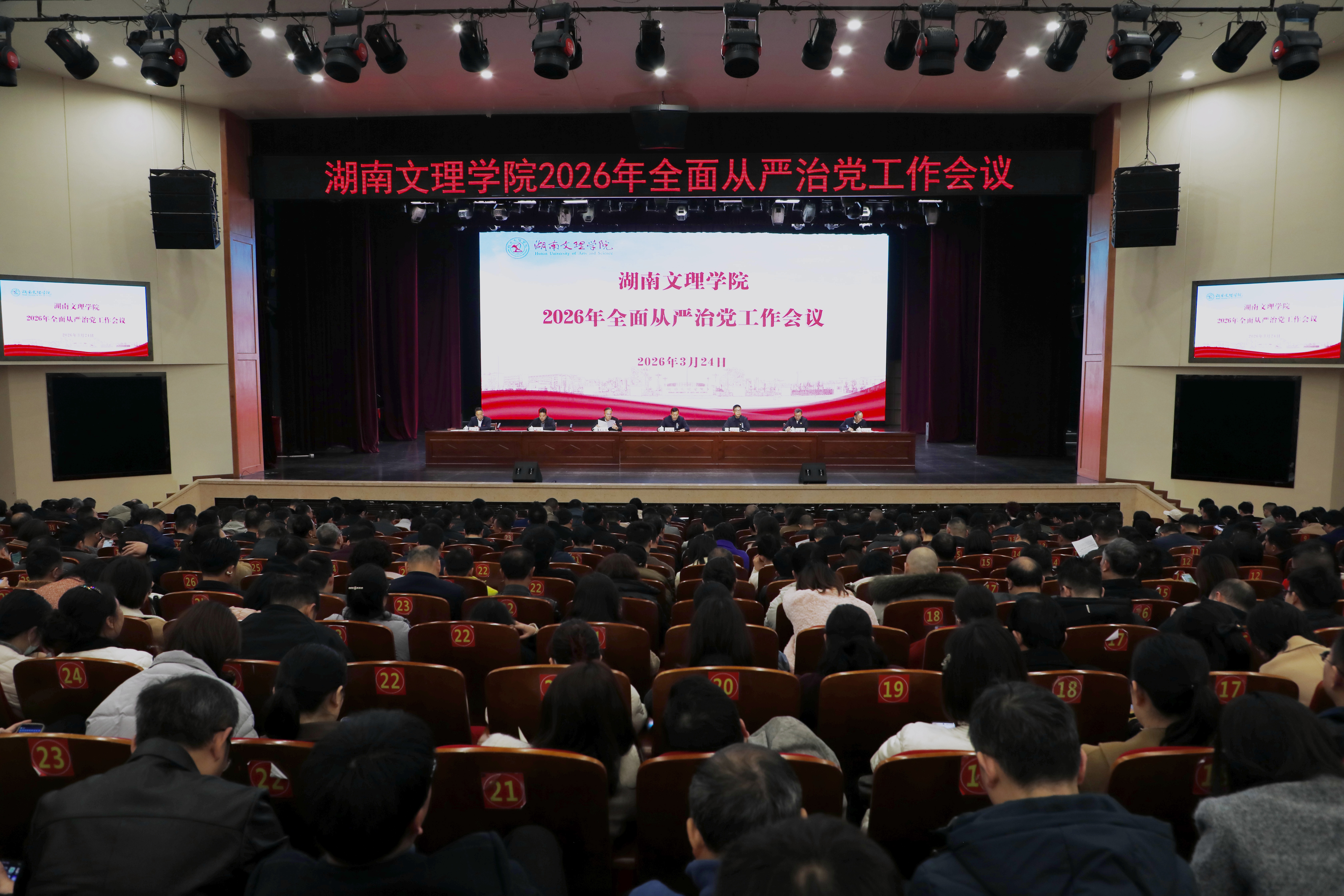 本网讯(文字 易姣 岳浩然 丁知平 图片 杜雅姿 贾艺)3月24日下午,湖南文理学院2026年全面从严治党工作会议在艺术中心举行。全体在家校领导、副科级以上干部(含退职干部、青年人才培养岗)、全体辅导员、全体在职教师党员参加会议。党委副书记、校长周智华主持会议。