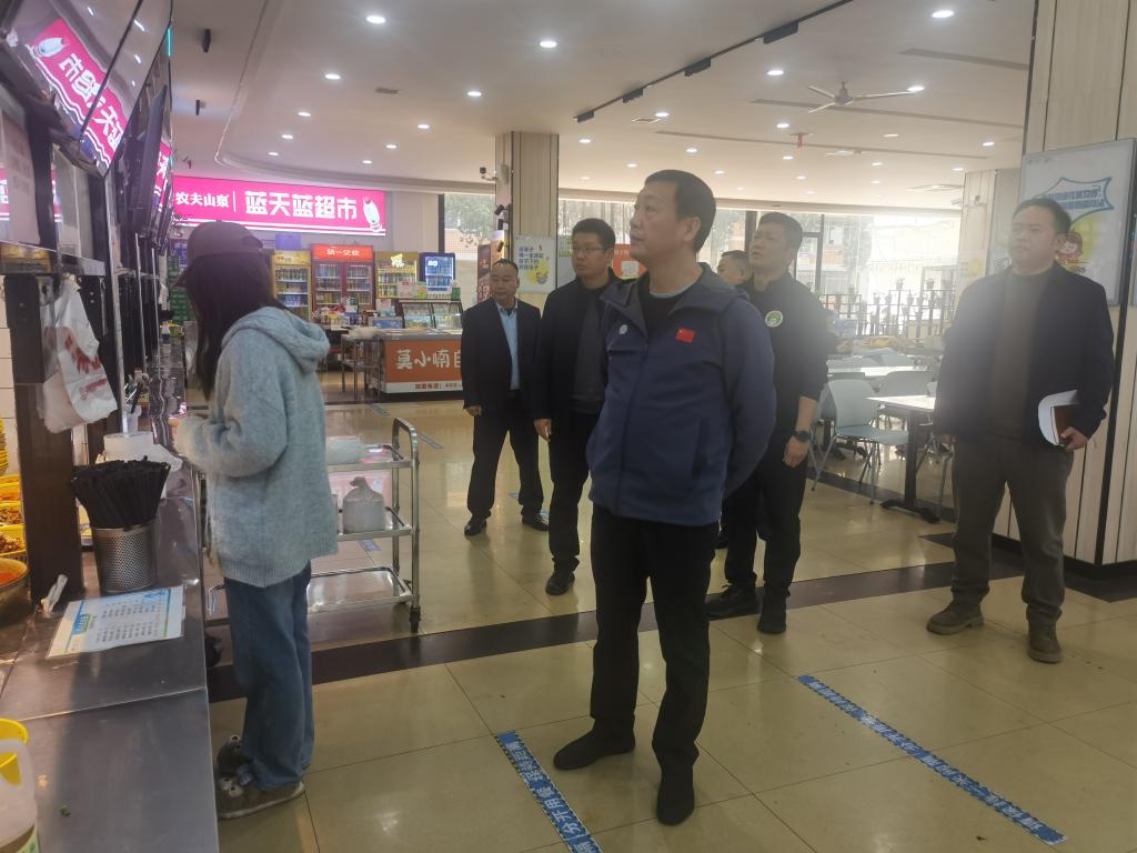 党委书记刘宇文(中)一行在学生第四食堂检查工作